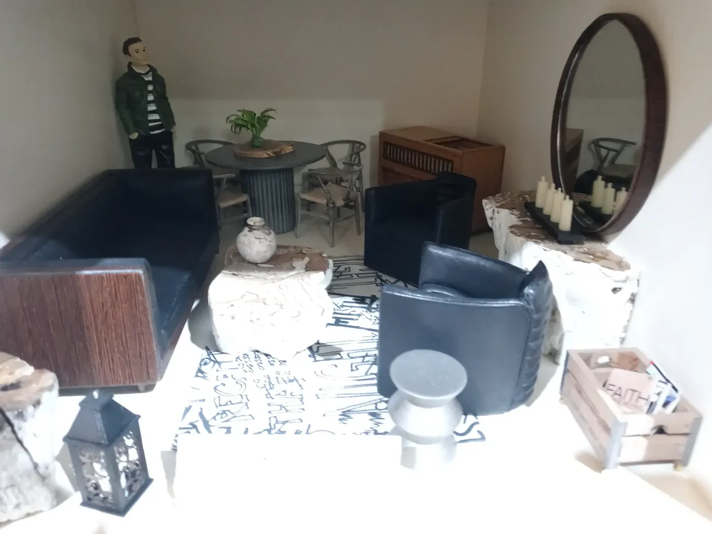 Even that - sure, the furniture’s a little mod, but it’s so cluttered, and so basic, no real detail, and let’s be honest… the scale’s a bit off. How big would that doll be sitting on that sofa? He’d look like a toddler.