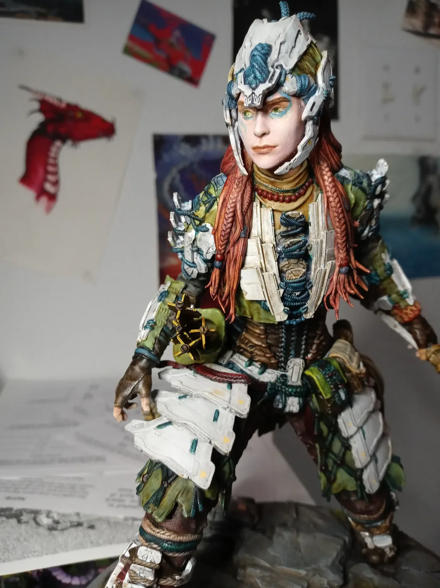 Orin was the first painted model we sold, about a year back. Most shops don’t sell models this size pre-painted, because they’re so hard to ship that way without damage. Painted Orin is easy, as they go — just wrap that braid up real good and she’s pretty much fine. You want to see a packaging nightmare?